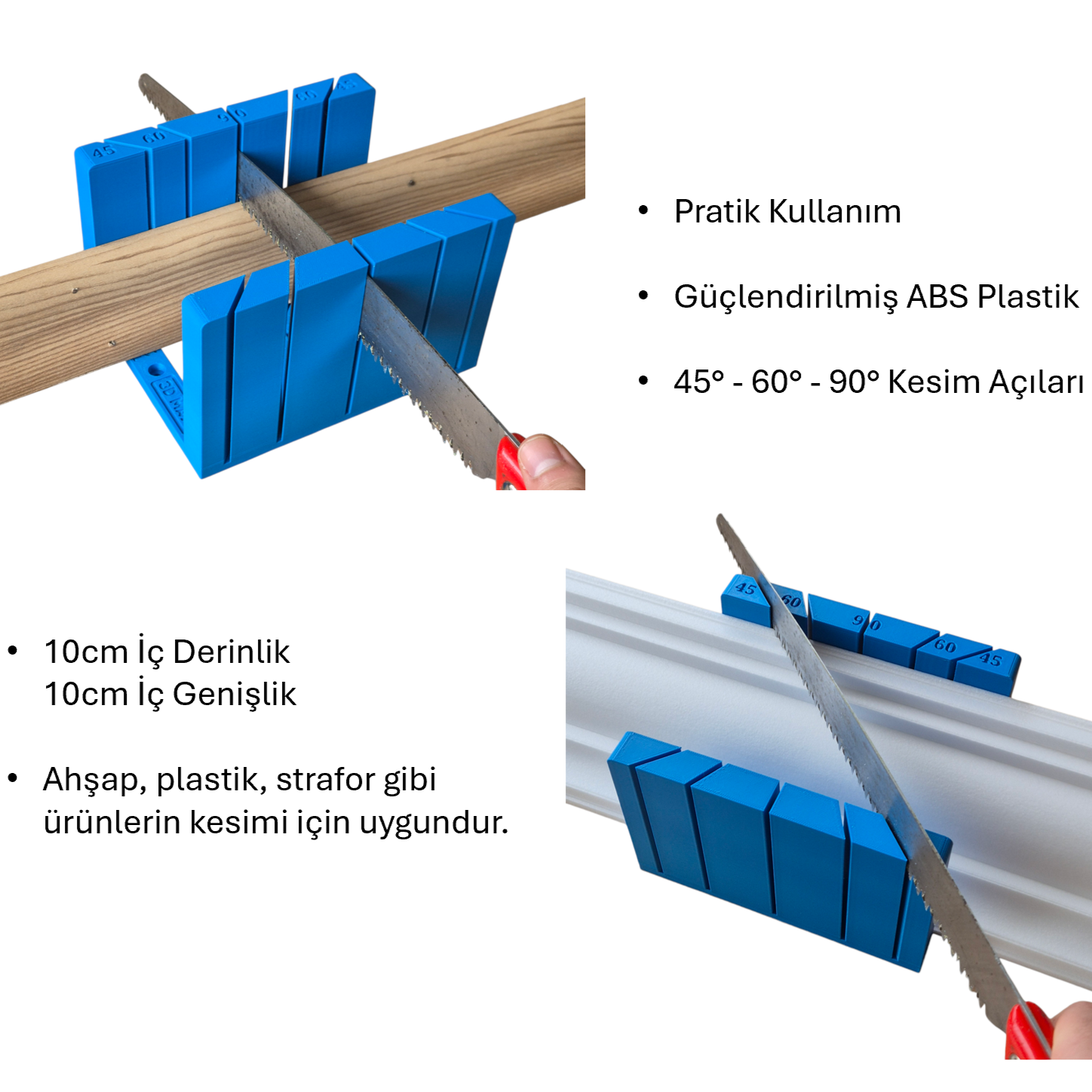 Çok Yönlü Kullanım: Ahşap çıta, plastik boru, strafor köpük ve dekoratif profillerin tamamında pürüzsüz kesim sağlar.